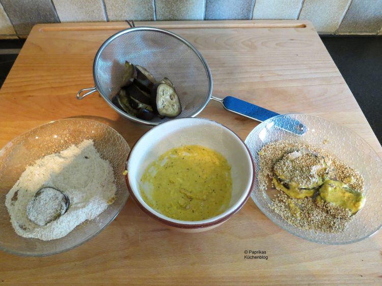 Auberginenscheiben vegan paniert (Kichererbsen)